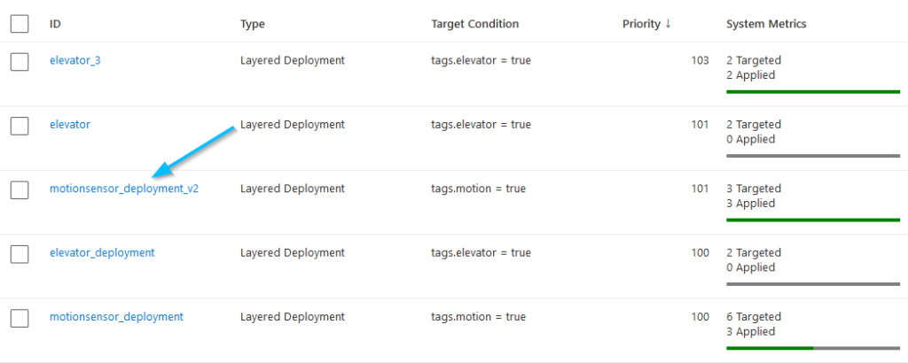 az iot edge deployment create --layered --deployment-id motionsensor_deployment_v2 --hub-name ih-demodeployment --content motionsensor_deployment_v2.json --target-condition "tags.motion = true" --priority 101