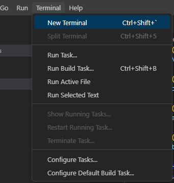 To create the layered deployment in Azure, we need to execute an Azure CLI command. So, I open a terminal in VS Code via the menu (see the screenshot below) or by using the shortcut Ctrl+Shift+`.