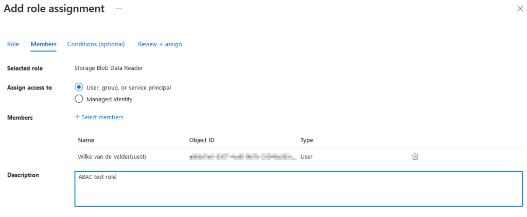 You may even add multiple conditions, but in this case I only wanted this one. We can now create the role assignment.