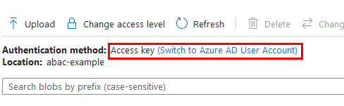 Ensure that the authentication method is set to Azure AD User Account and not Access key.