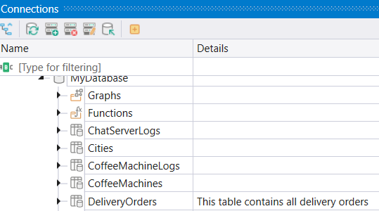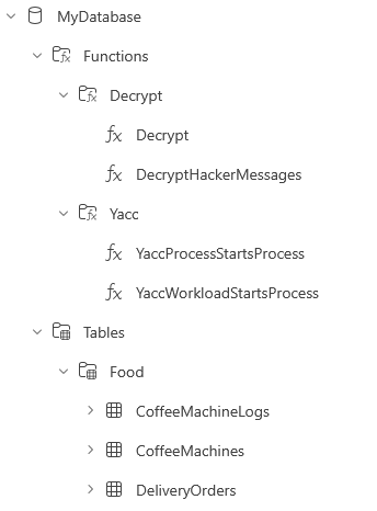 By adding a folder to a function or table, it is possible to create a hierarchy and therefore a better overview. This groups tables and functions that belong together and helps to quickly find tables and functions.